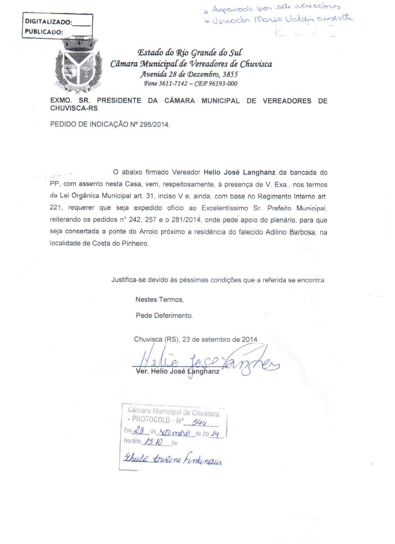 Vereador(es): Helio José Langhanz, Helio José Langhanz, Helio José Langhanz, Helio José Langhanz