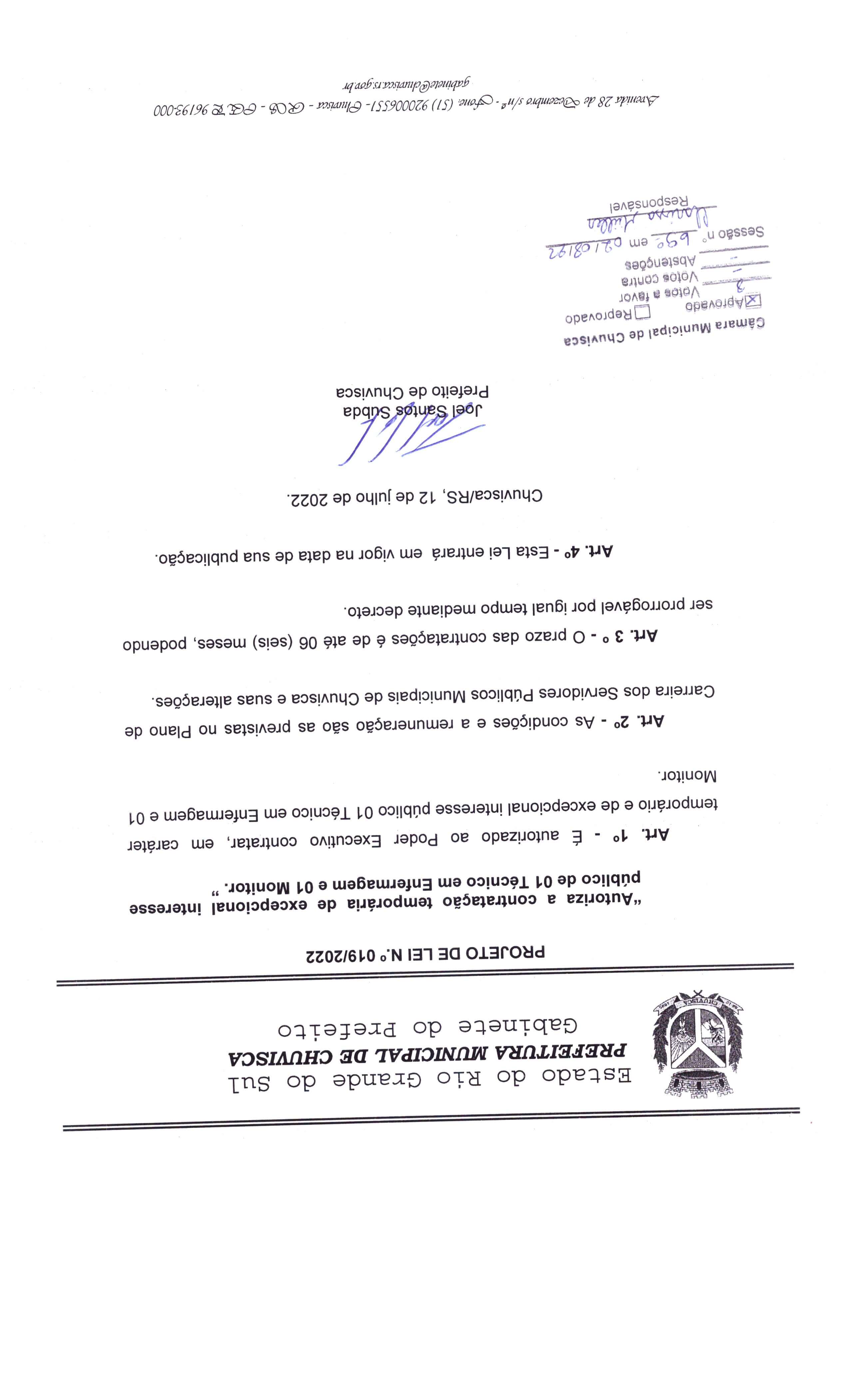 Titulo: PROJETO DE LEI Nº19