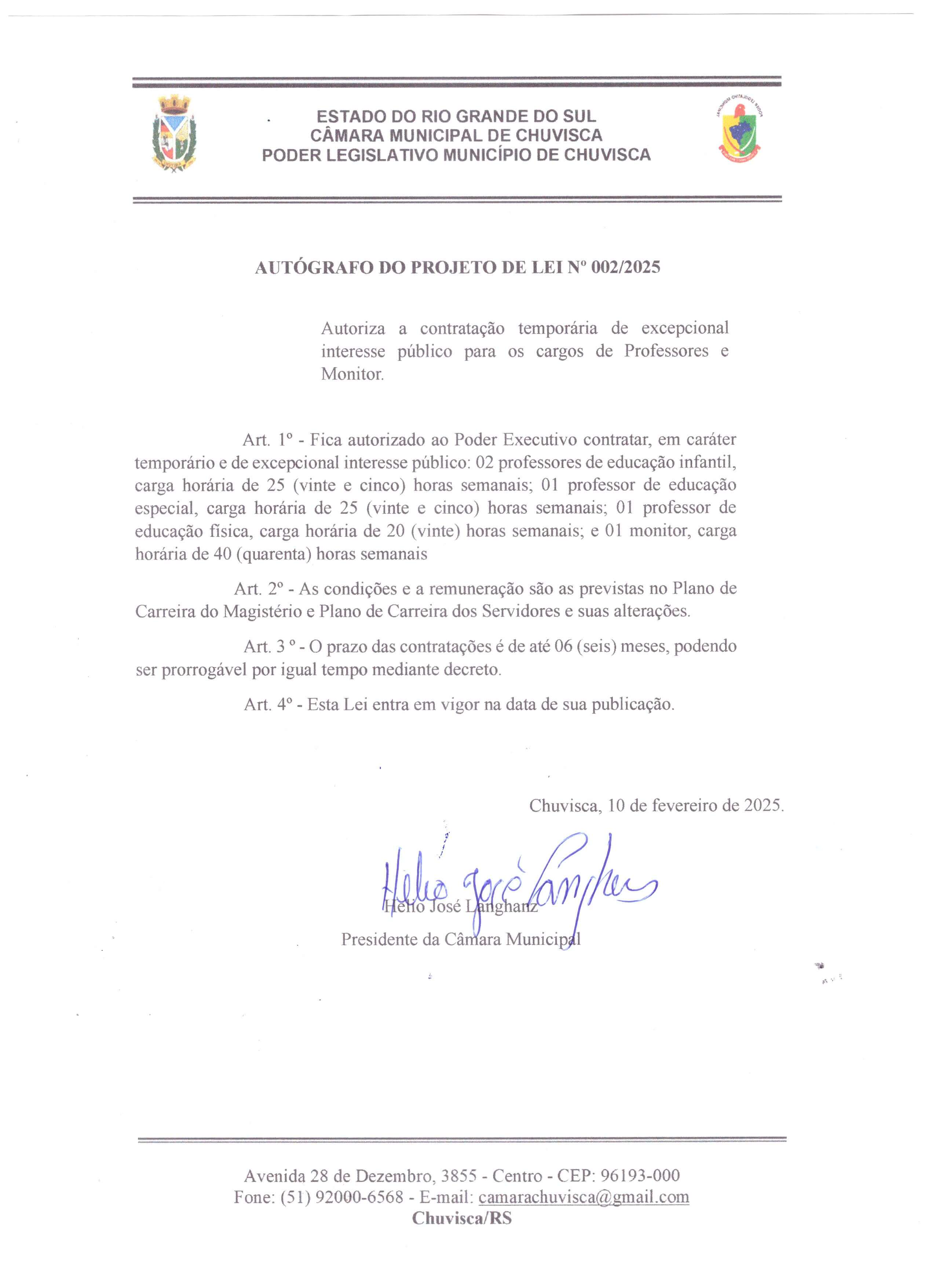 Observação: 20/01/2025 - 3º Sessão Ordinária (Leitura)