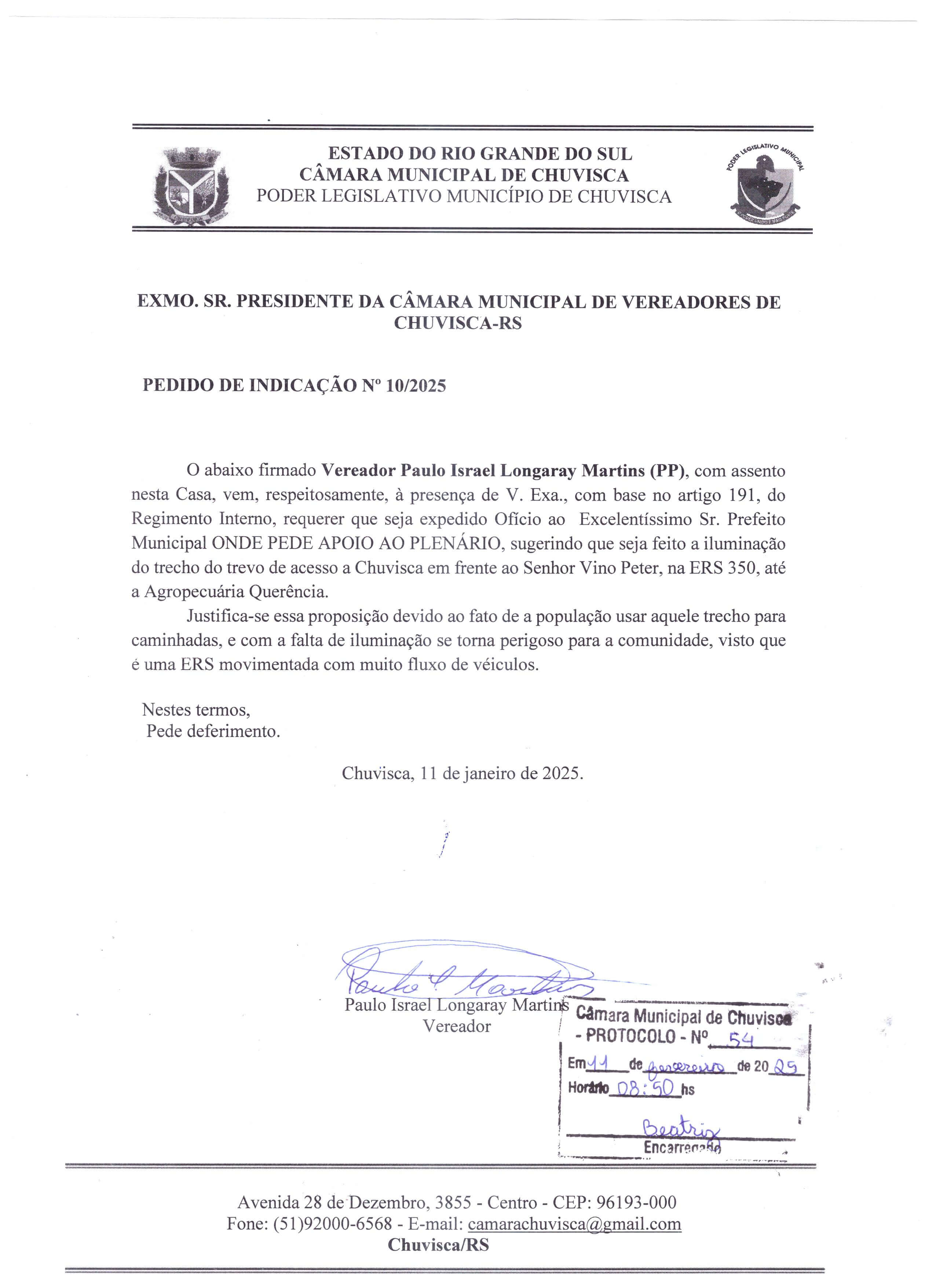 Vereador(es): Paulo Israel Longaray Martins