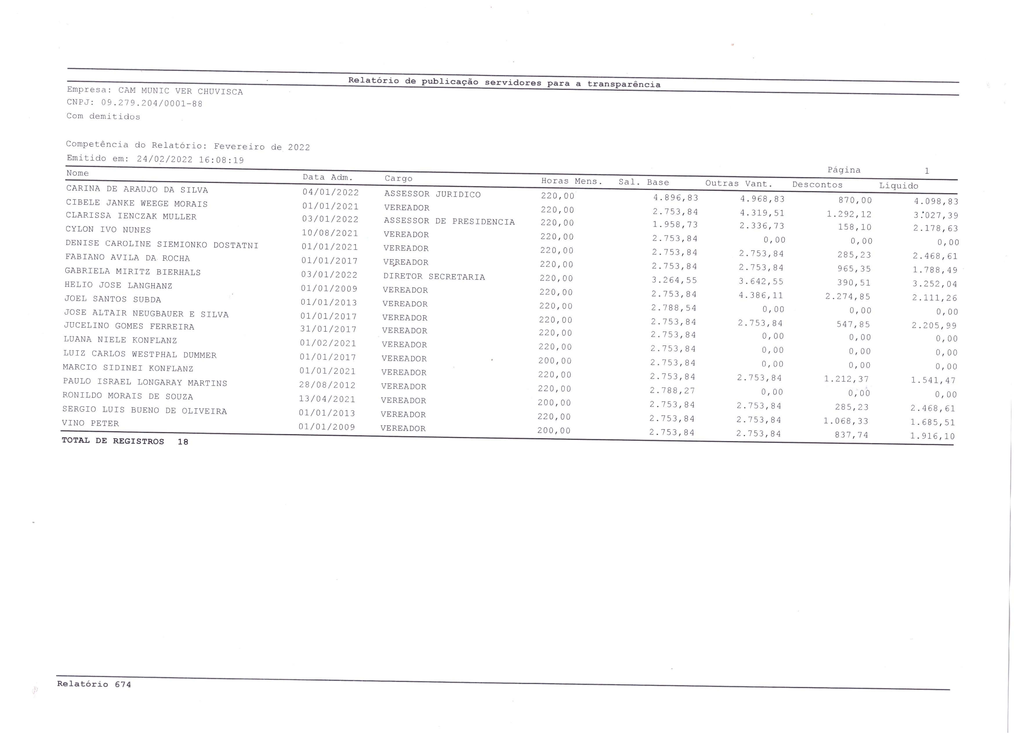 RELATÓRIO DA FOLHA DE PAGAMENTO 02/2022
