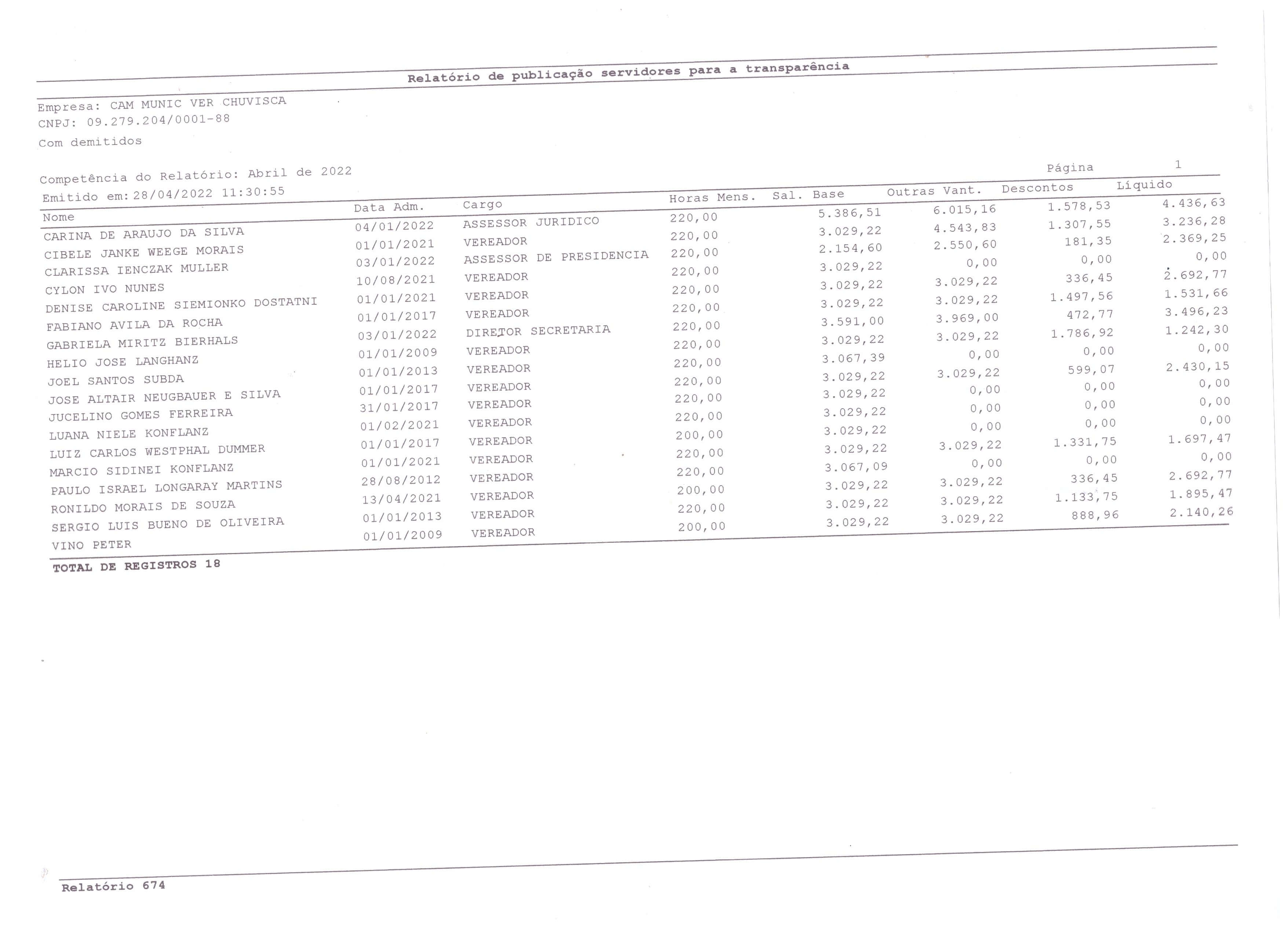 RELATÓRIO DA FOLHA DE PAGAMENTO 04/2022
