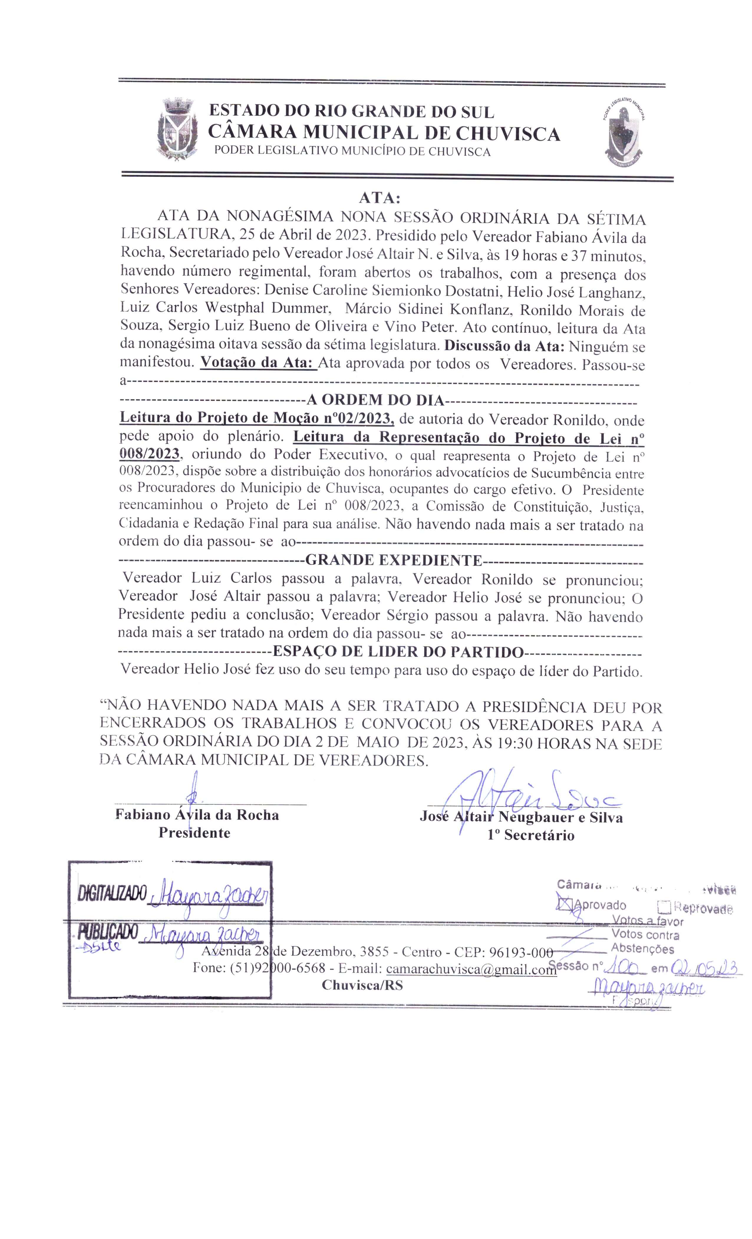 ATA 99º SESSÃO ORDINÁRIA DA 7º LEGISLATURA.