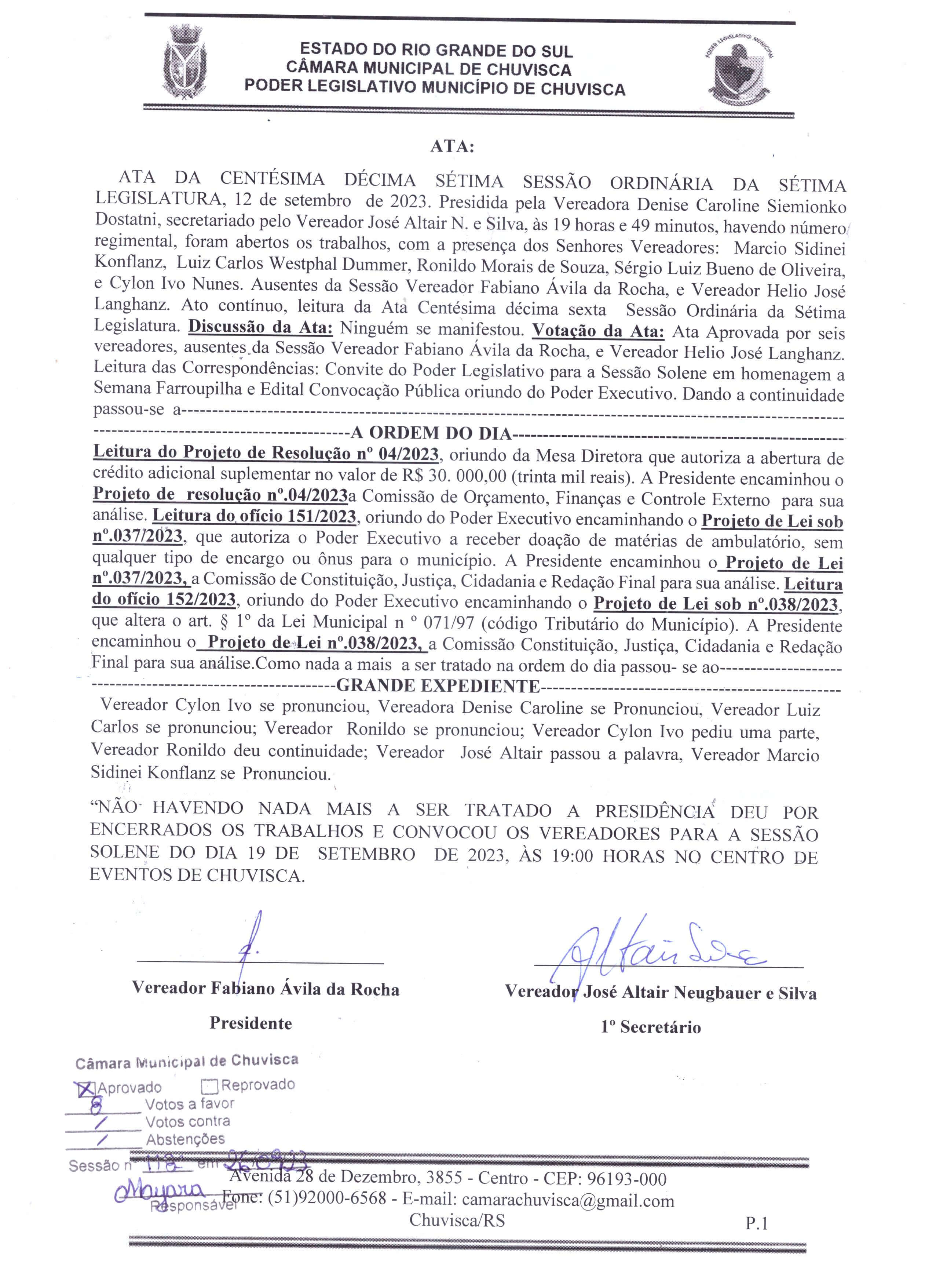 ATA 117º SESSÃO ORDINÁRIA DA 7º LEGISLATURA.