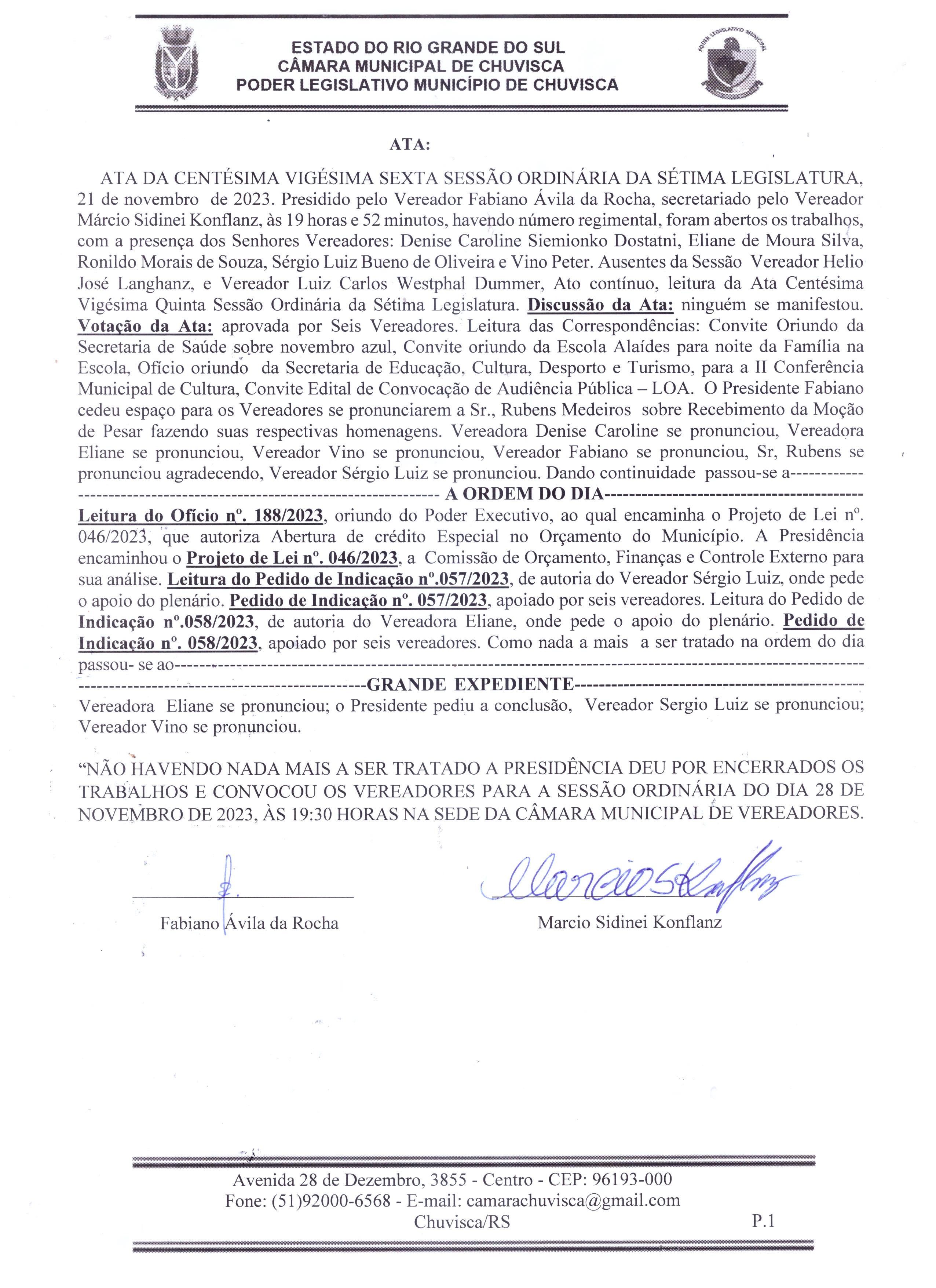 ATA 126º SESSÃO ORDINÁRIA DA 7º LEGISLATURA.