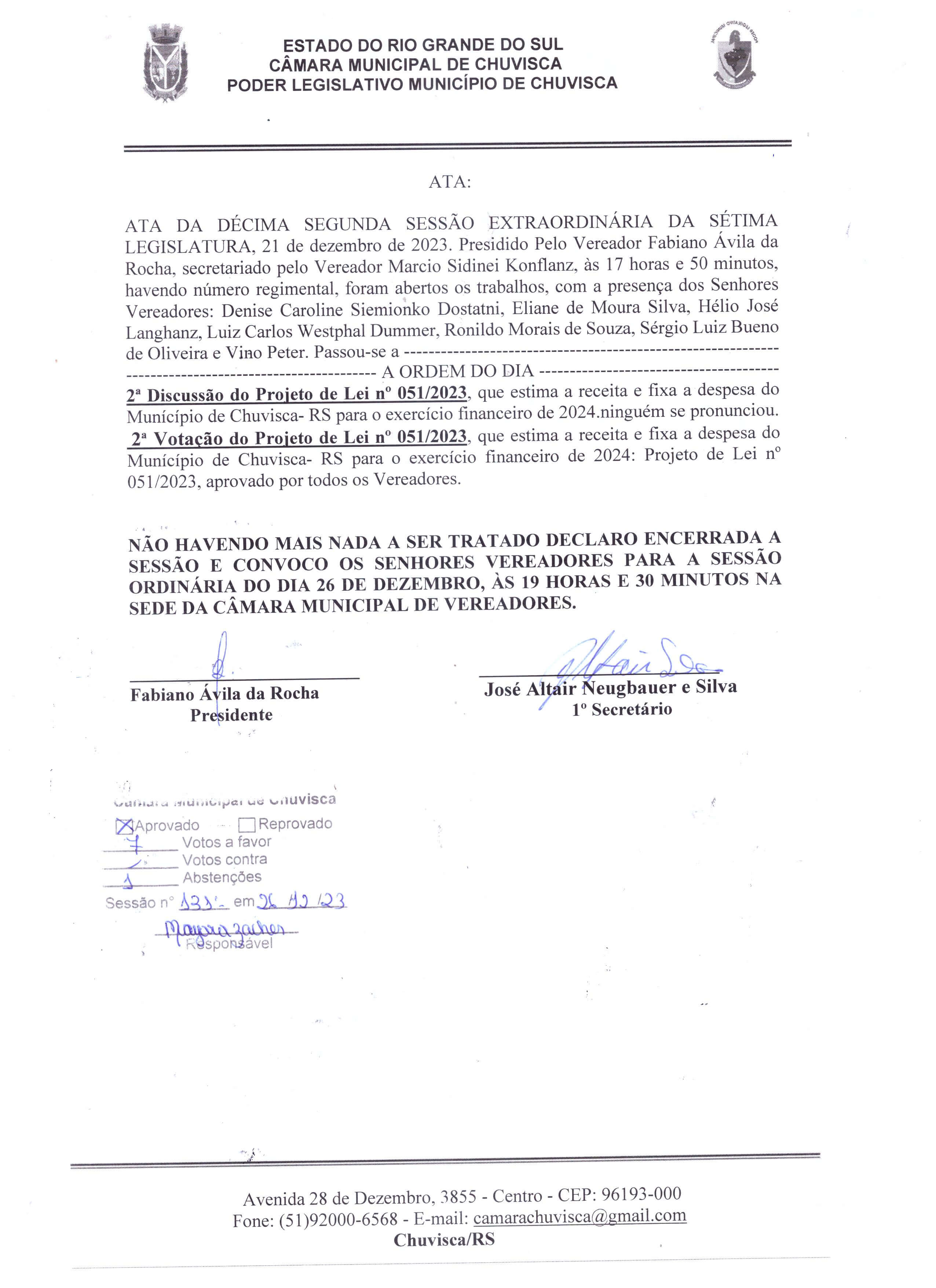 ATA 12º SESSÃO EXTRAORDINÁRIA DA 7º LEGISLATURA.