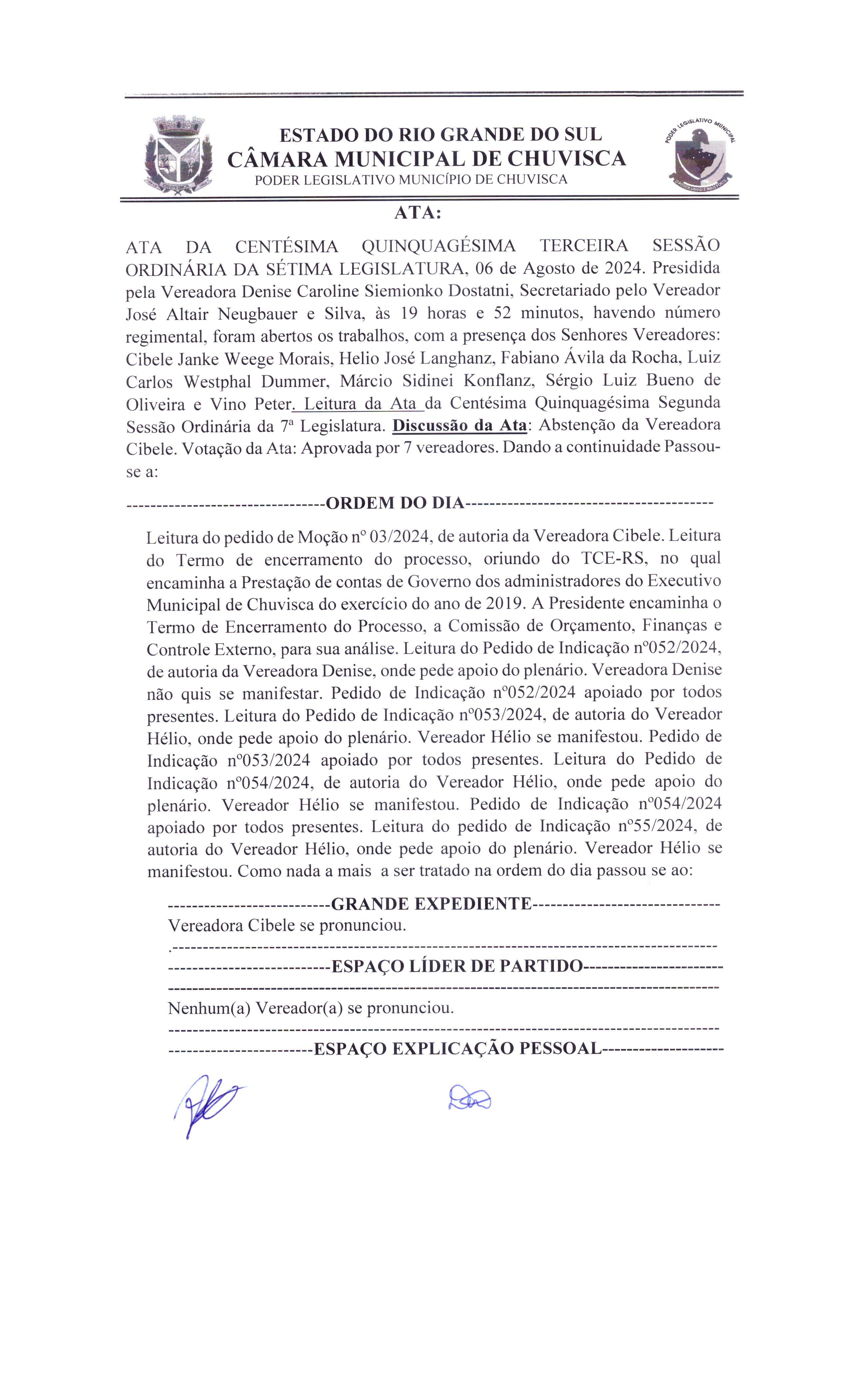 Ata da 154ª Sessão Ordinária da 7ª Legislatura