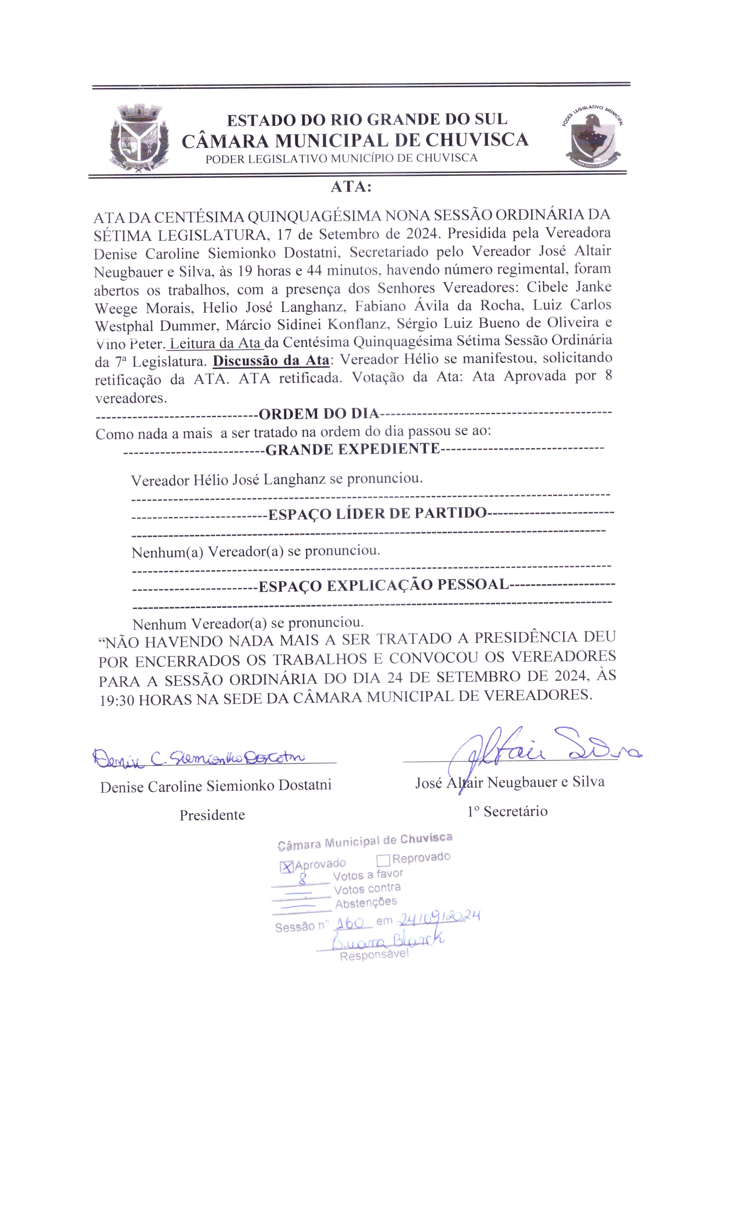 Ata da 160ª Sessão Ordinária da 7ª Legislatura