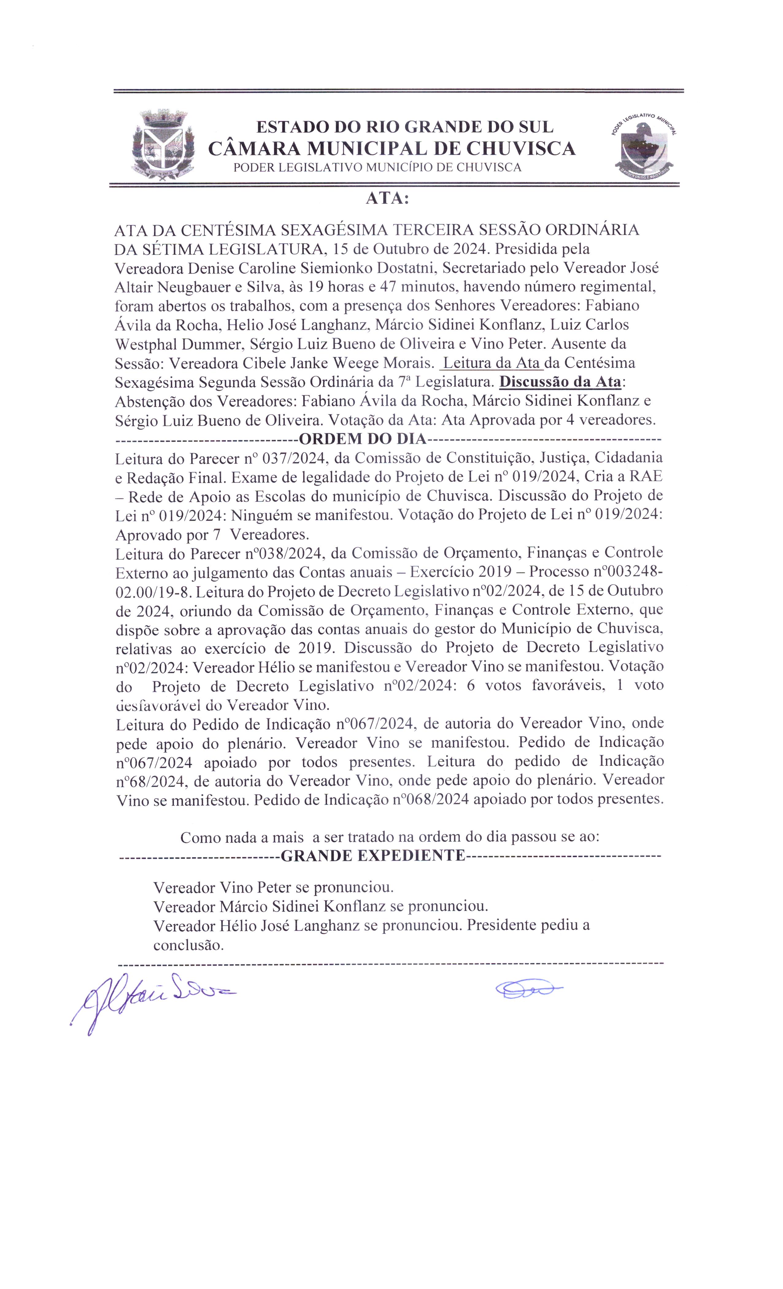 Ata da 163ª Sessão Ordinária da 7ª Legislatura