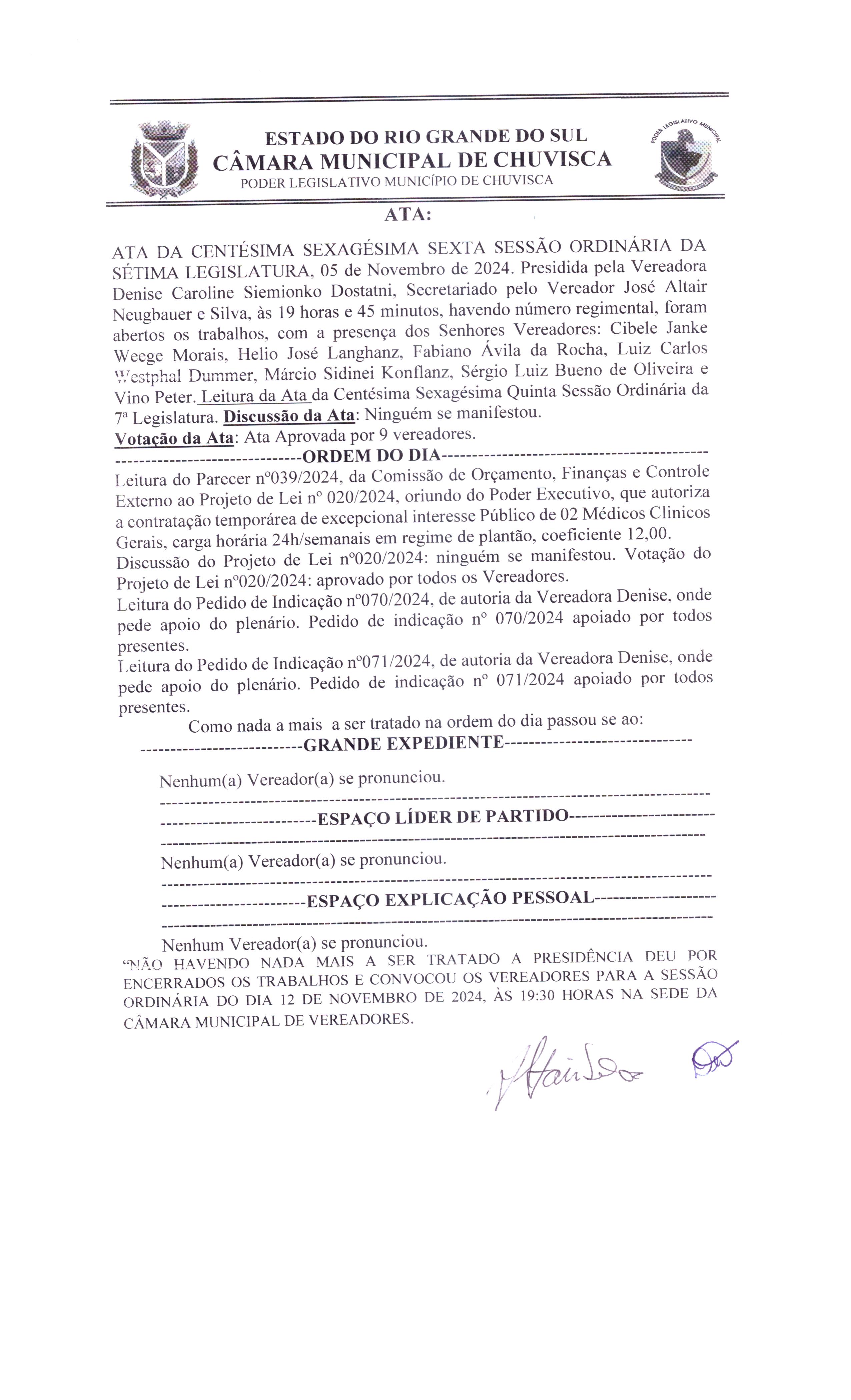 Texto: Ata da 166ª Sessão Ordinária da 7ª Legislatura