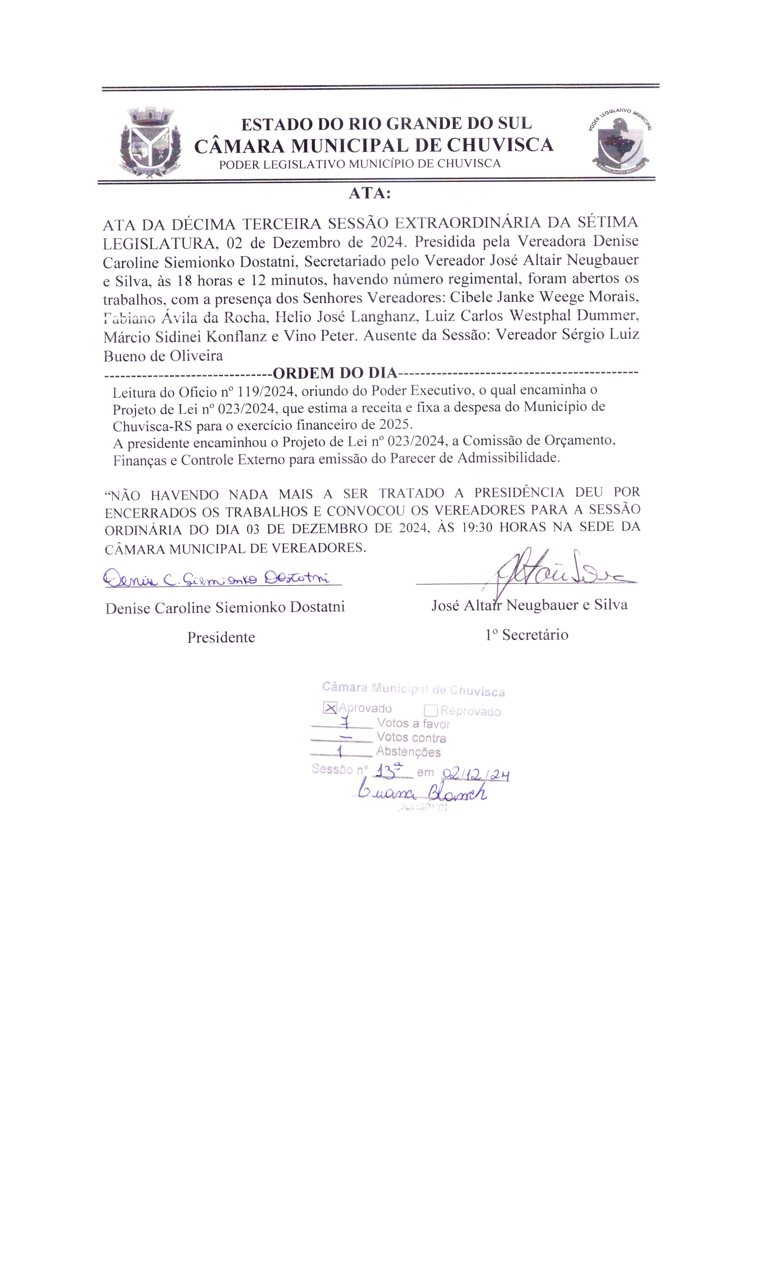 Texto: 13º Sessão Extraordinária da 7º Legislatura.