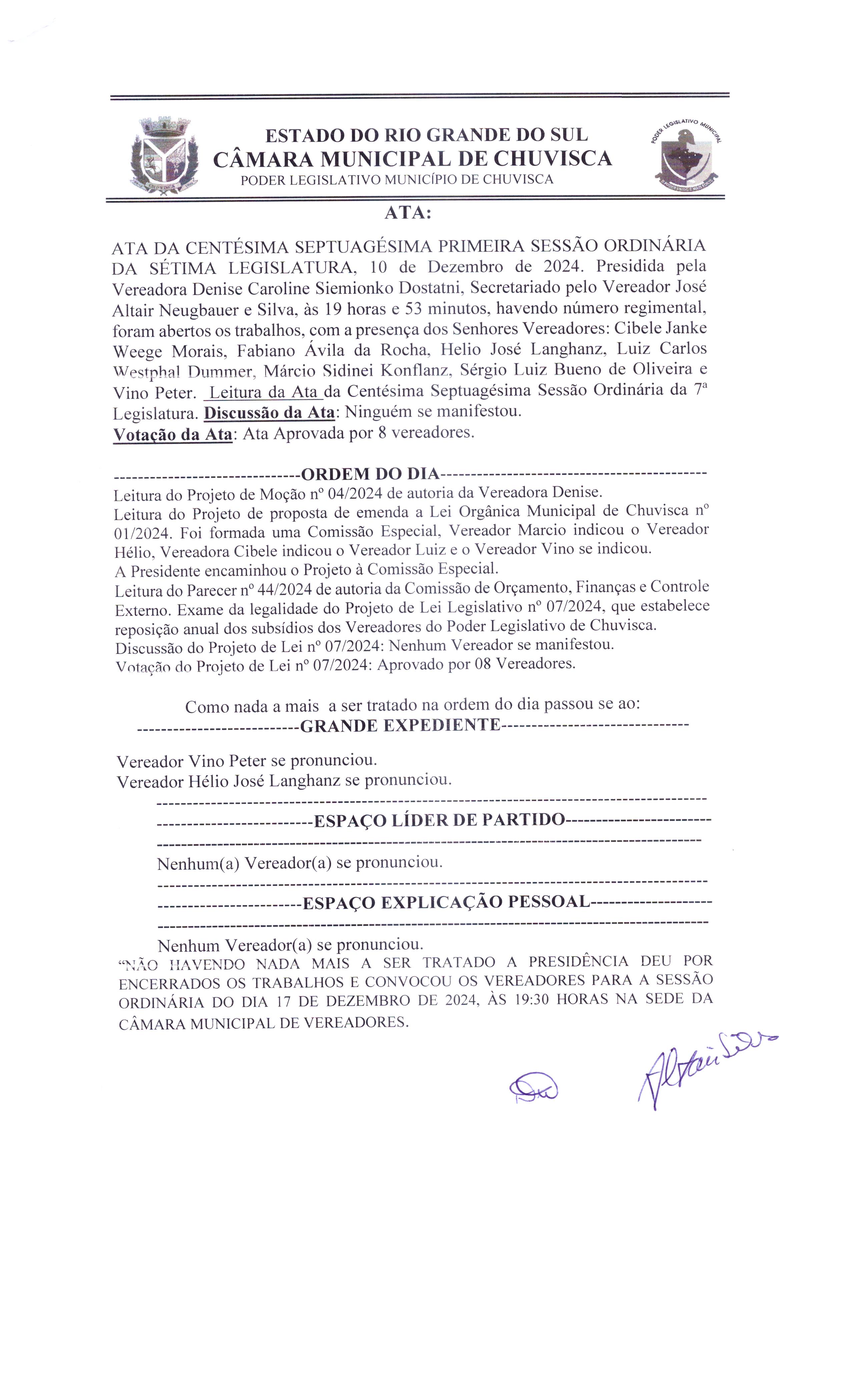 Ata da 171ª Sessão Ordinária da 7ª Legislatura