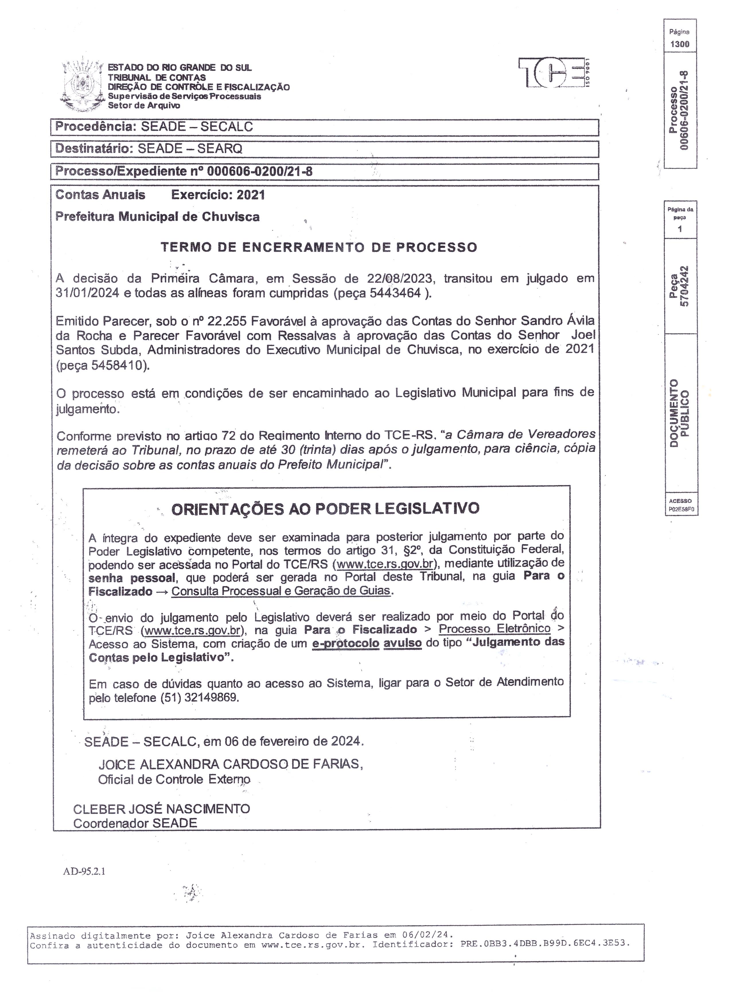 - Termo de Encerramento de Processo ( 06 de Fevereiro de 2024 )