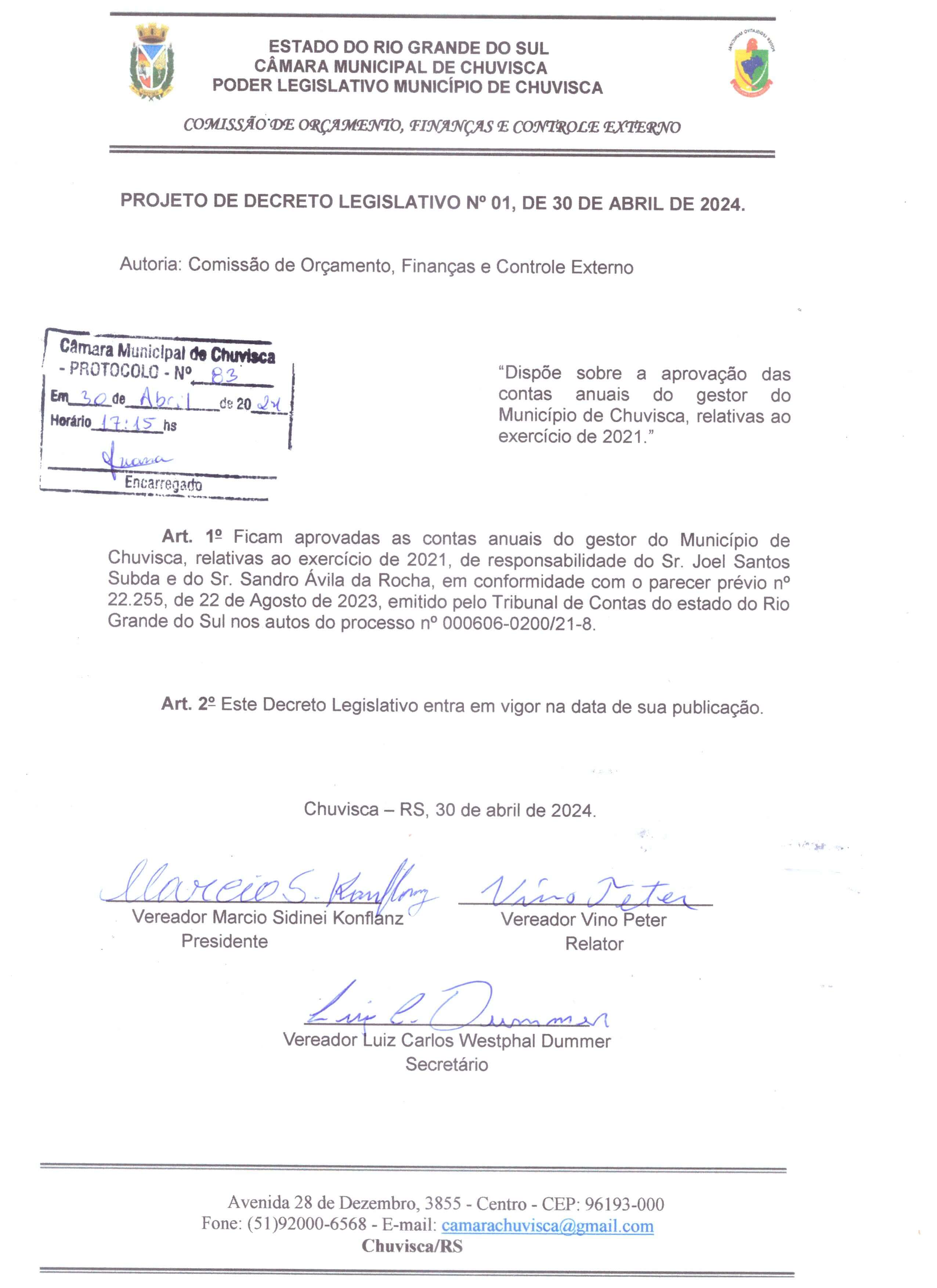 - Projeto de Decreto Legislativo nº01/2024 ( 30 de Abril de 2024 )