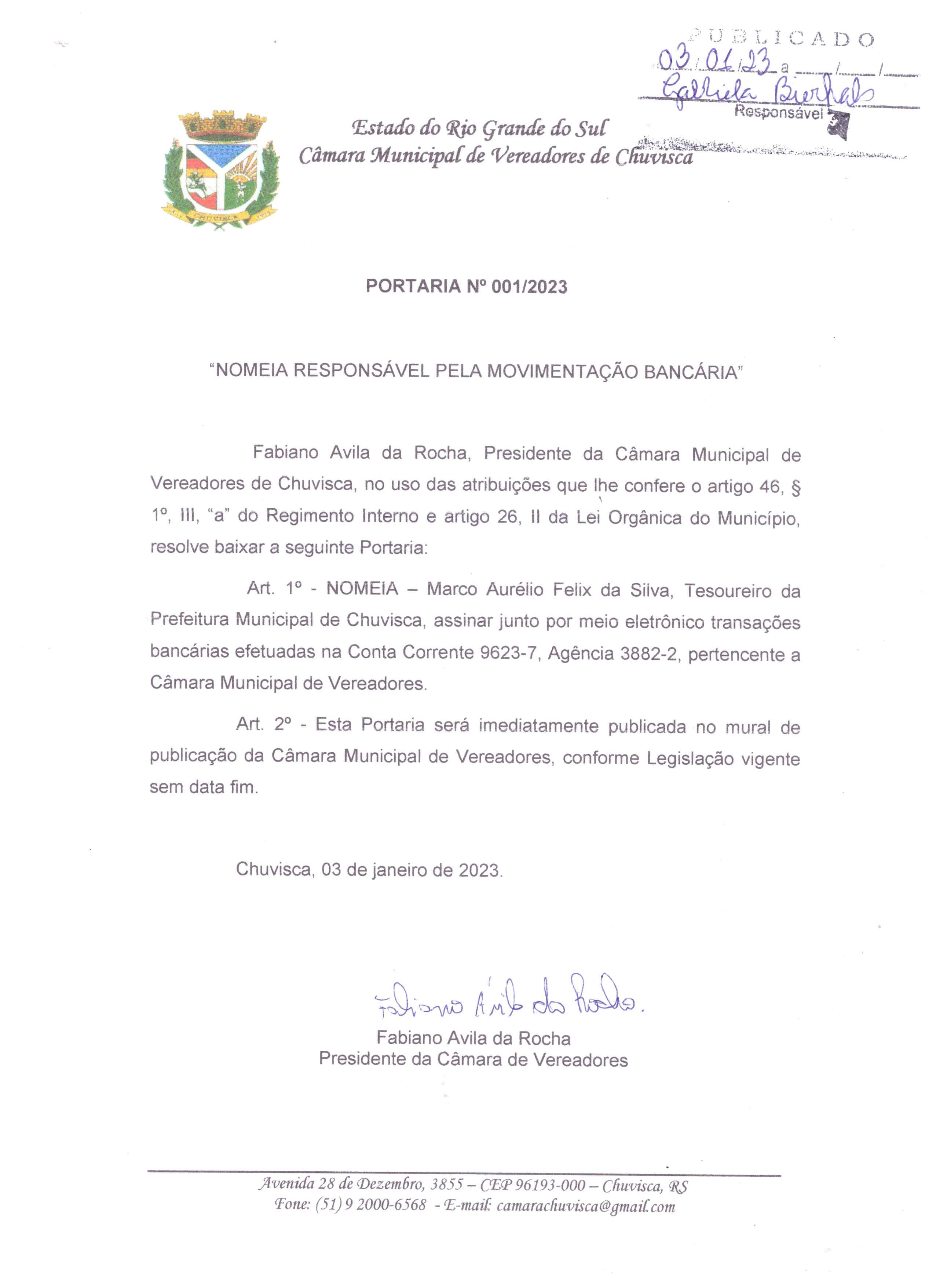 PORTARIA Nº 001/2023