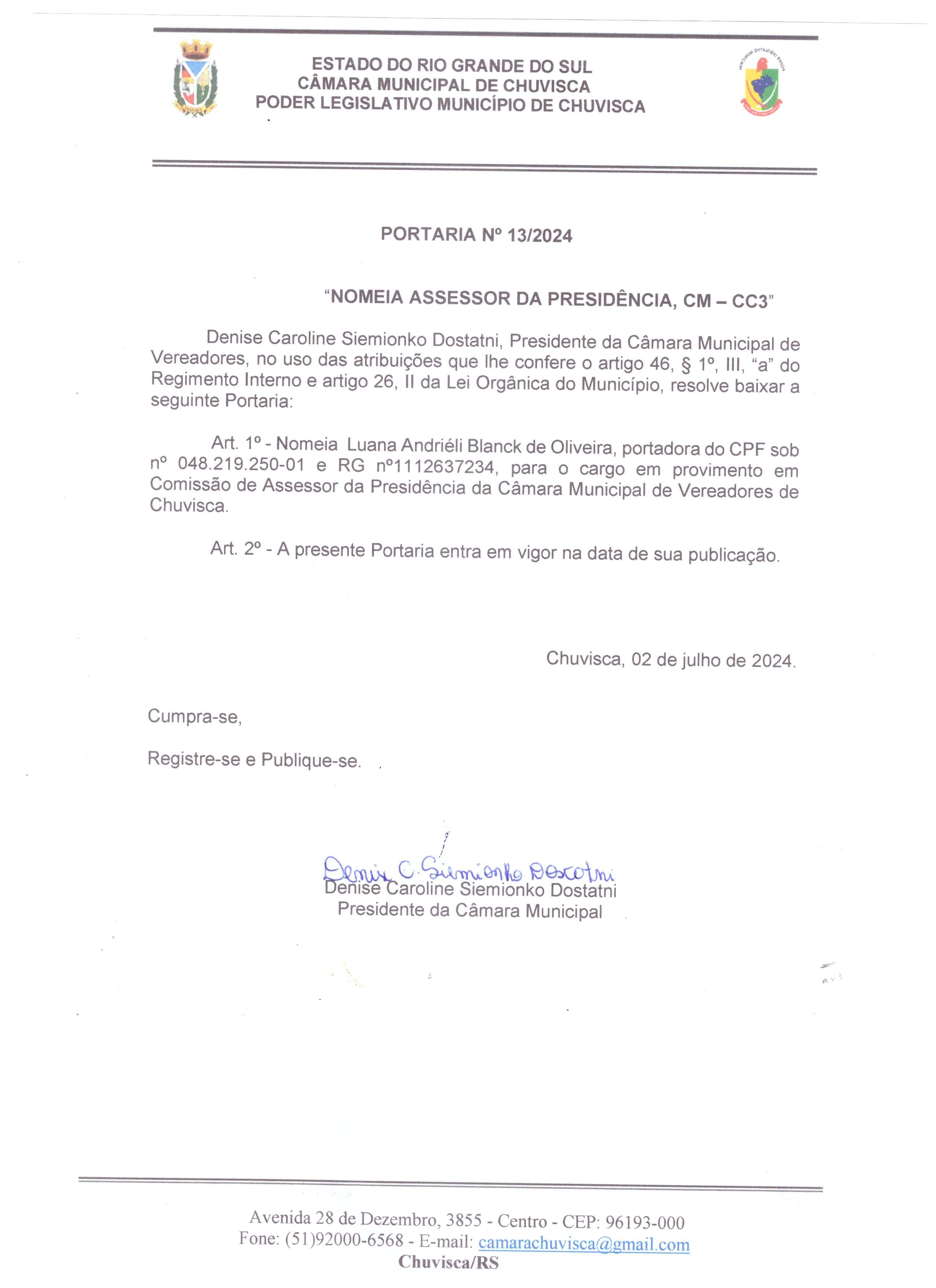 Nomeia Assessor da Presidência