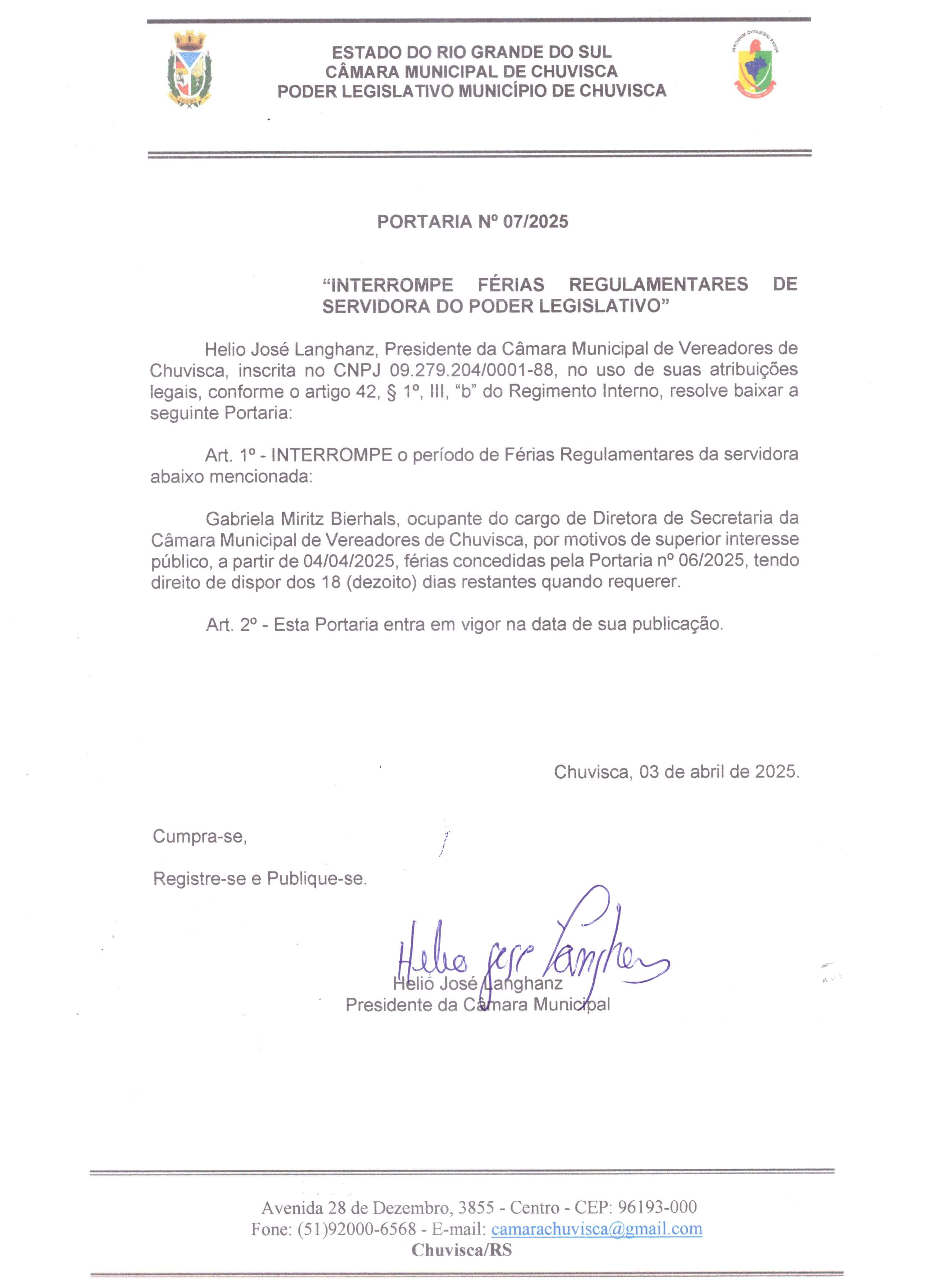 Interrompe Férias regulamentares de Servidora do Poder Legislativo